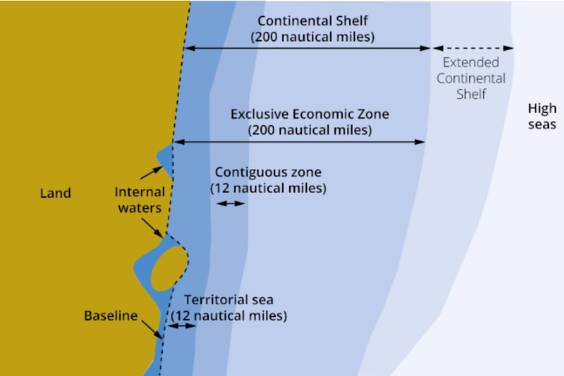 Landward inside the baseline are internal waters where states have the same sovereign jurisdiction as they do over their land territory. No foreign vessels or aircraft are allowed to make so-called innocent passage through a country’s internal waters.