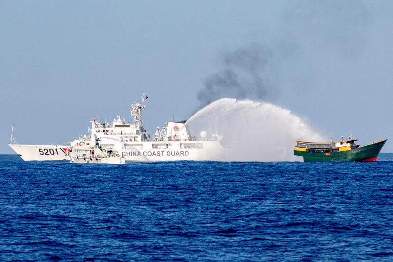 Chinese coast guard vessels have in recent weeks fired water cannons at Philippine boats attempting to supply a deliberately sunken warship that serves as a Philippine naval outpost at the Second Thomas Shoal (Ayungin Shoal), with Beijing also warning Manila against trying to access it.