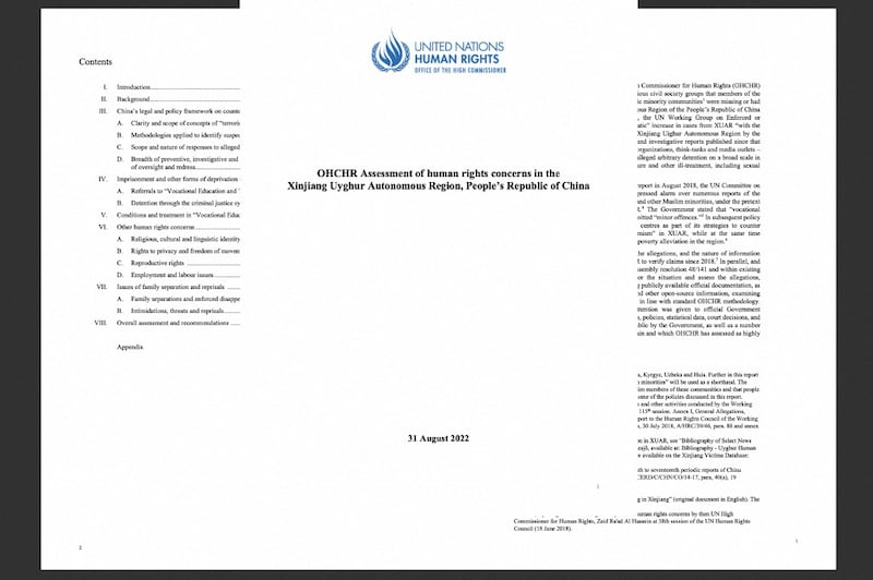 ب د ت نىڭ جەنۋەدىكى كىشىلىك ھوقۇق ئىشخانىسى 31-ئاۋغۇست كۈنى ئېلان قىلغان ئۇيغۇرلارغا ئالاقىدار دوكلاتى. 2022-يىلى 1-سېنتەبىر، جەنۋە.