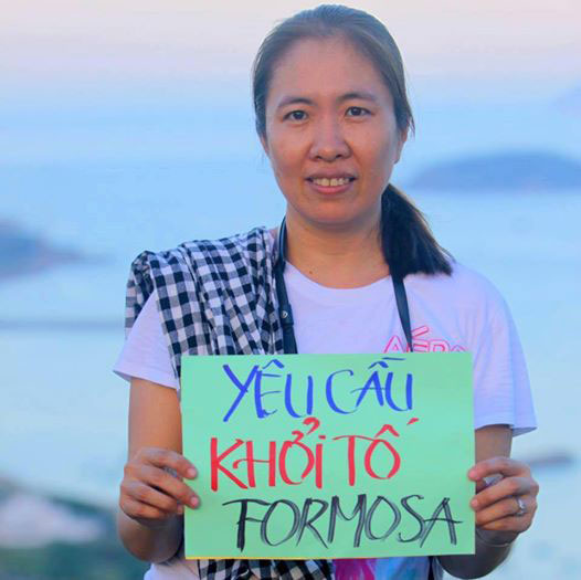 Blogger Mẹ Nấm trong cuộc biểu tình phản đối Formosa gây thảm họa môi trường cá chết.
